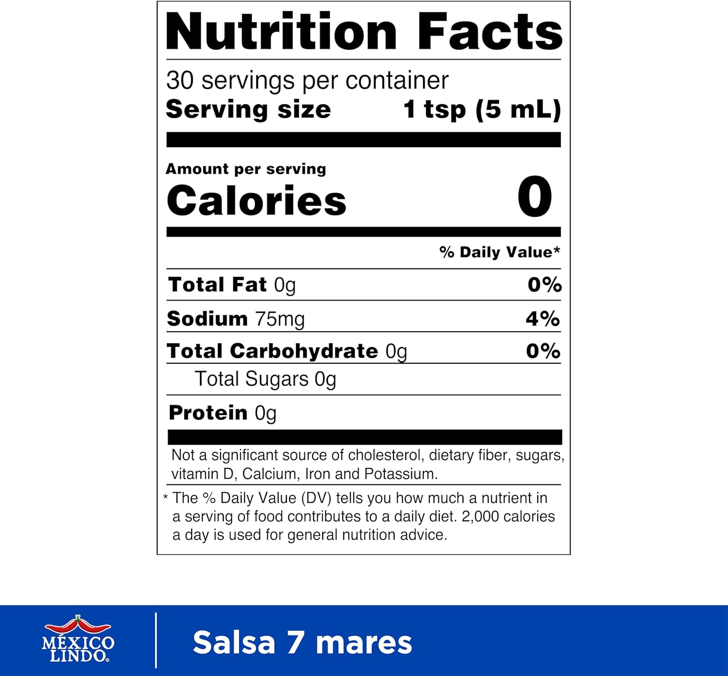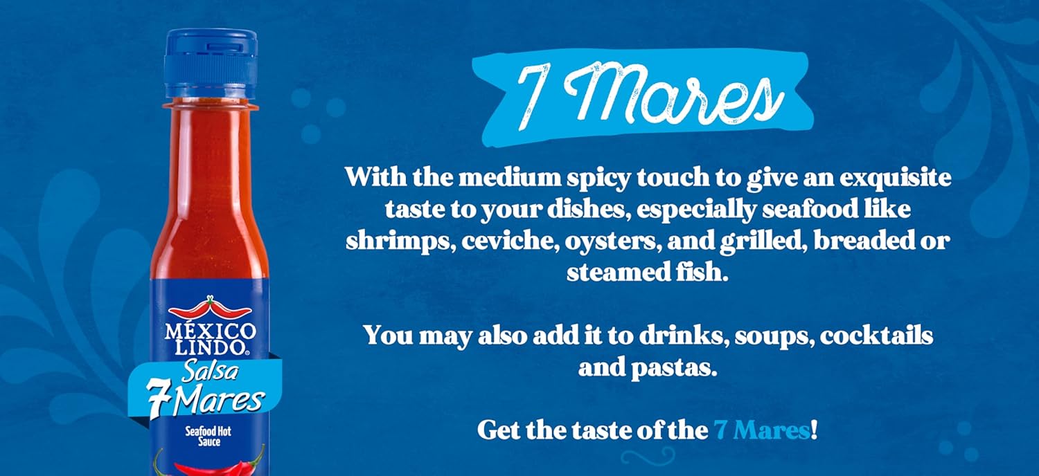 Salsa 7 Mares 150ml México Lindo | Salsa para mariscos | Salsa picante chile de árbol | Gluten Free | Kosher | Hecho en México